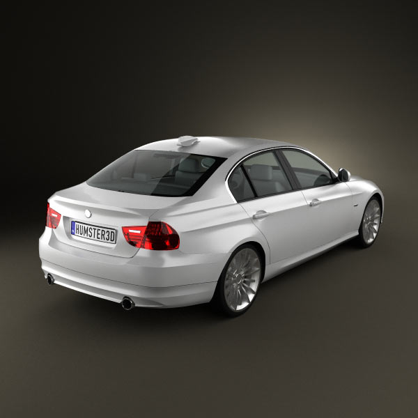 The BMW 3 Series Sedan 2011 3D model brings a streamlined silhouette with smooth lines and a sporty low stance. Large alloy wheels enhance the vehicle’s presence within a scene.