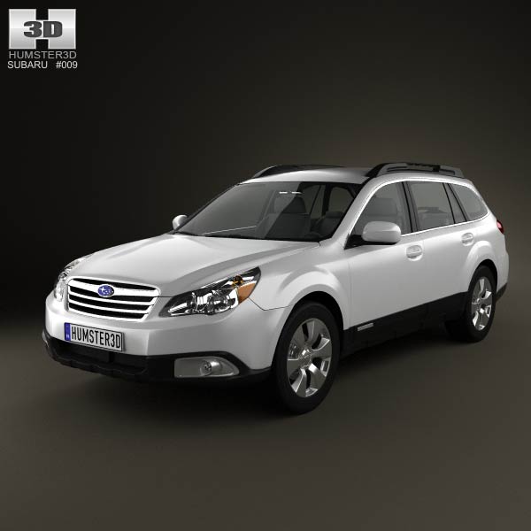 The Subaru Outback US 2011 3D model represents a robust, elongated body and an elevated stance. The smooth lines and prominent roof rack enhance its utility in various 3D scenes.