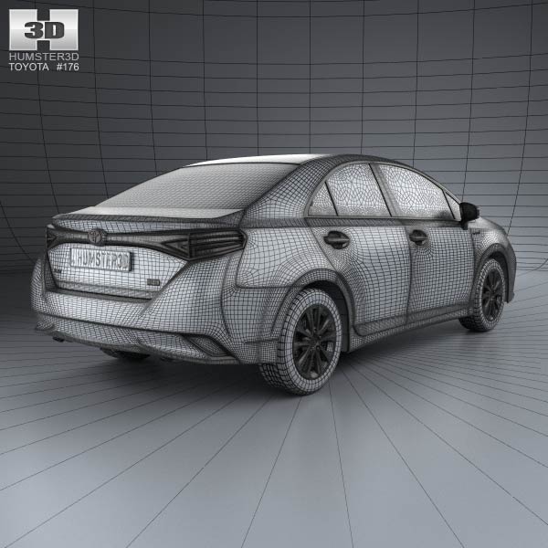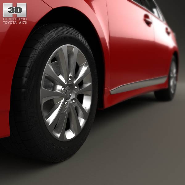 The Toyota Sai G 2013 3D model brings a polished red exterior with a streamlined silhouette. Its alloy wheels and chrome accents contribute to its contemporary design.