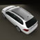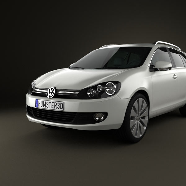 The Volkswagen Golf Variant 2010 3D model reflects a compact station wagon design with a streamlined silhouette and a predominantly white body. Its large alloy wheels and roof rails add practicality, making it suitable for various 3D scenes.