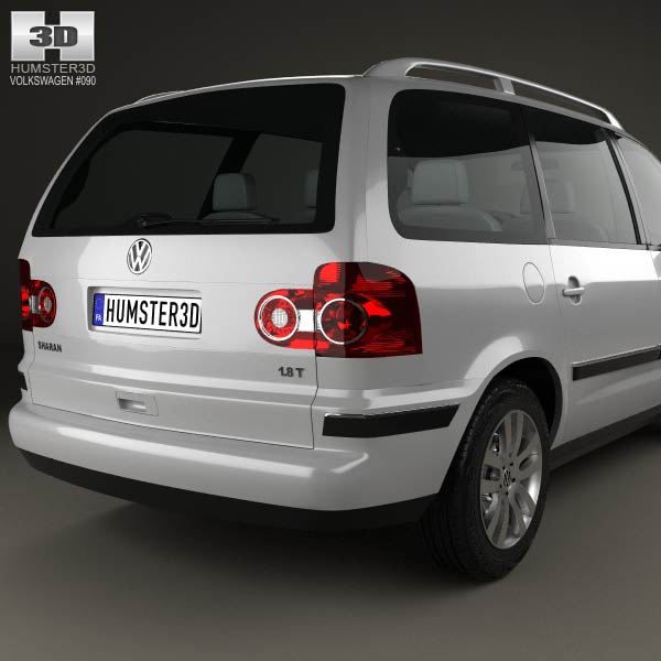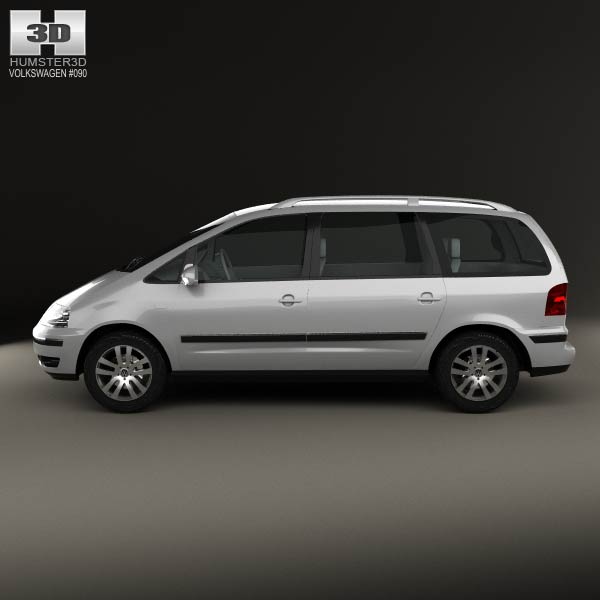 The Volkswagen Sharan 2004 3D model showcases a compact, boxy shape typical of multi-purpose vehicles, with a light silver exterior and dark side moldings. Its large windows allow for effective light entry, enhancing the interior space.