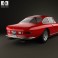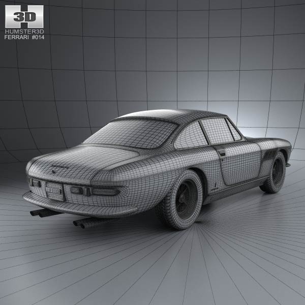 The Ferrari 330 GT 1965 3D model presents a red exterior and smooth, rounded contours, creating a harmonious silhouette. The prominent circular headlights define its front profile, while chrome accents along the sides and windows add sophistication.