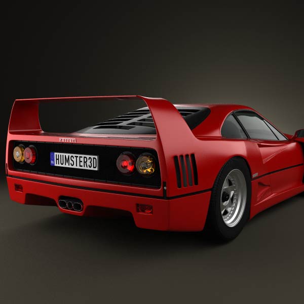 The Ferrari F40 (1987) 3D model demonstrates an angular design with sharp lines and a low stance. This model is suitable for realistic renders in scenes focused on sports cars or racing environments.